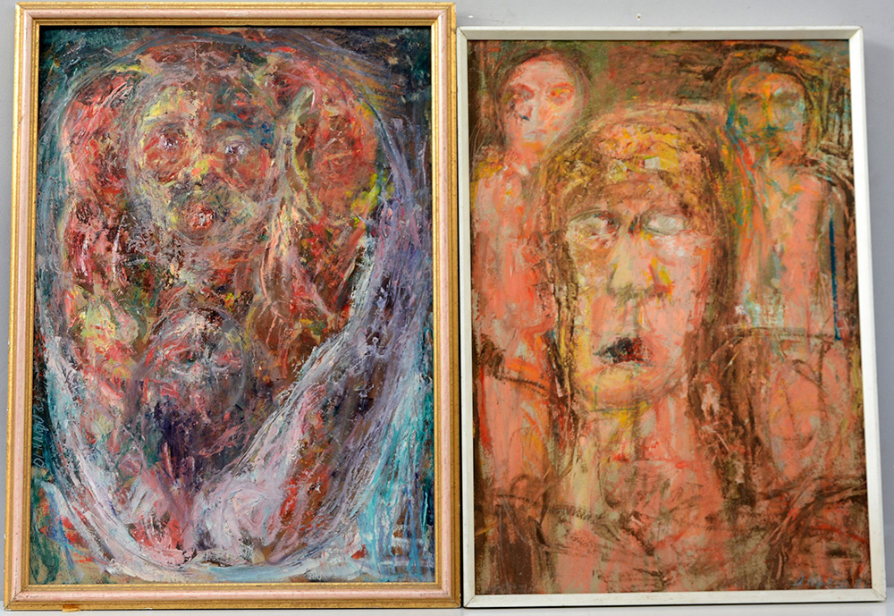 Di Nardo "Volti" lotto di due tecniche miste di misure diverse, in cornici