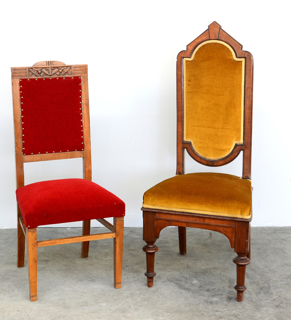 Lotto composto da due sedie di fatture e legni diversi (difetti)