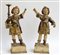 Arte del sec. XVIII. Coppia di sculture raffiguranti angeli reggitorcia in legno e cartapesta policroma poggianti su basi squadrate (h cm 61) (difetti e mancanze)