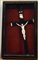 Arte del sec. XIX. Cristo crocefisso in avorio scolpito montato su croce in legno ebanizzato. Contenuto in teca