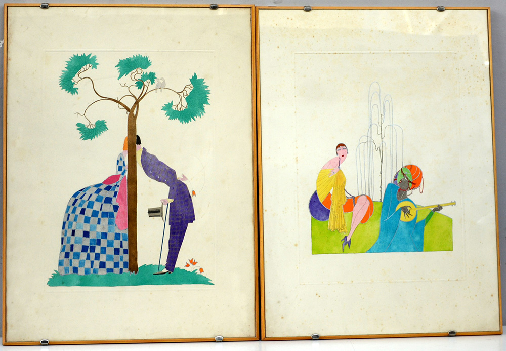 Lotto 1065 | Arte dell'inizio del sec. XX. coppia di acquerelli raffiguranti scena galante...