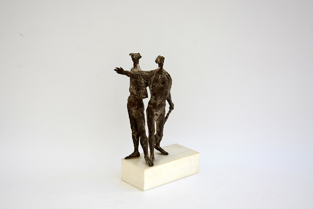 Ignoto "Figure" scultura in bronzo (h. cm 27,5) poggiante su base a plinto in marmo bianco (cm 20x6x9,5). (Lievi difetti)