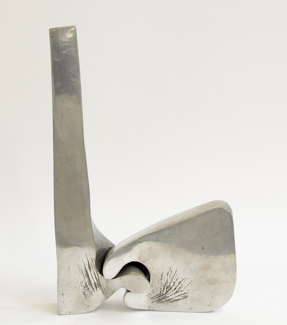Benevelli Giacomo scultura in alluminio, due pezzi ad incastro, 1970 (cm 5,5x44x5). Opera firmata e datata (Lievi difetti)