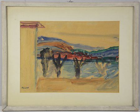 Gino Meloni (Varese 1905 - Lissone 1989) "Paesaggio" tempera su carta (cm...