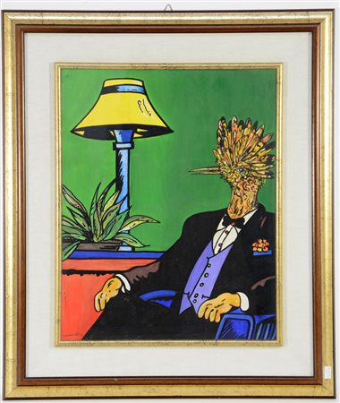 Max Hamlet Interno con figura e lampada. 1978. olio su tela ( cm 50x40 )...