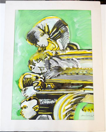 Remo Brindisi (Roma 1918 - Lido di Spina 1996) "Senza titolo", tecnica mista su carta (cm 70x51). Firmato in basso