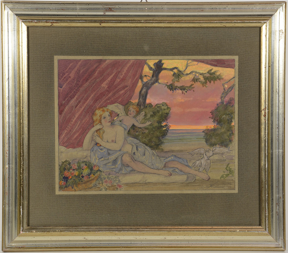 Venturini "Venere e Cupido" tecnica mista su carta (cm 23x30,5) firmato in...