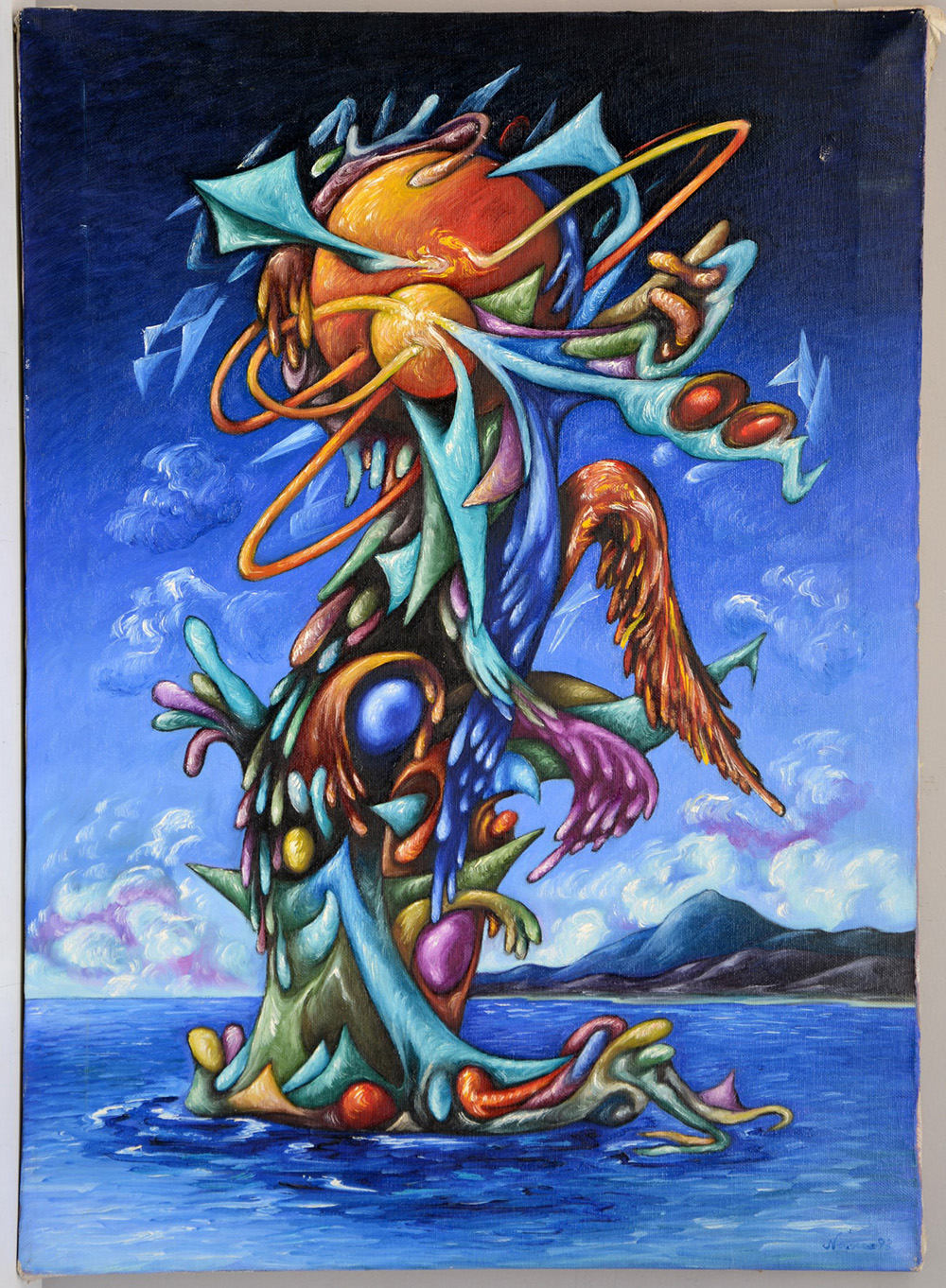 Naimo Nicola "N.Y. 1993" olio su tela, firmato e datato al verso e titolato e firmato al retro (cm 70x50). (Difetti e mancanze)