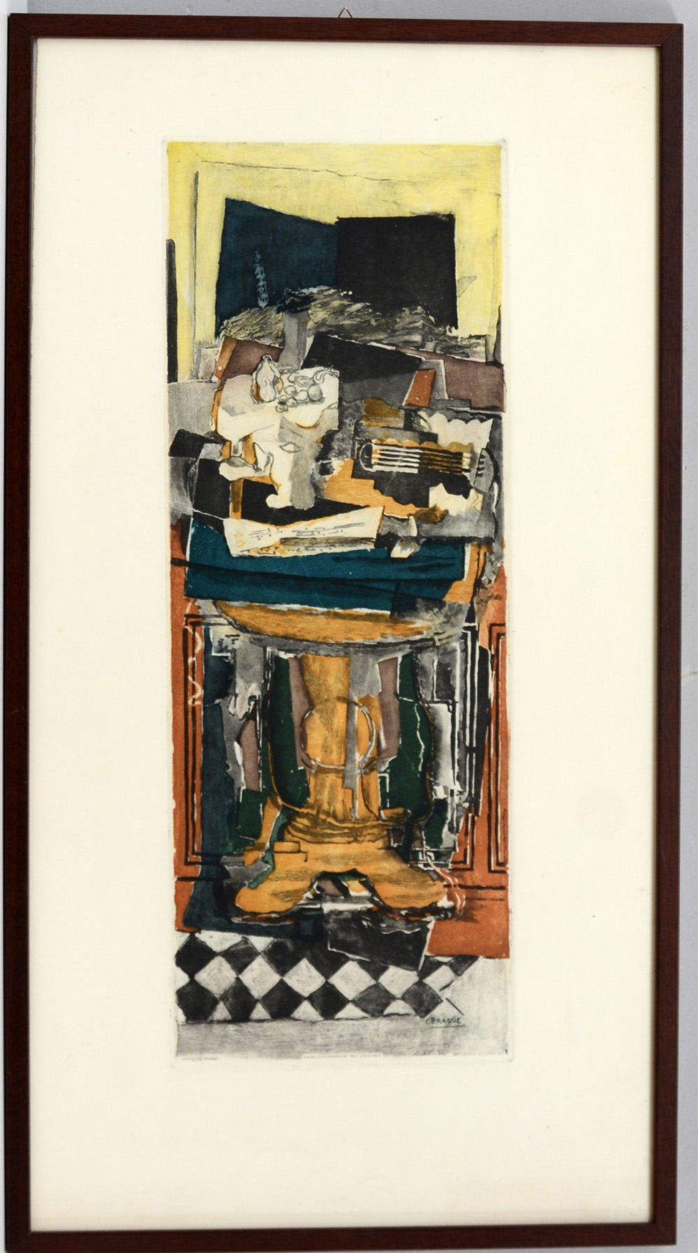 George Braque (Argenteuil 1882 - Parigi 1963) "Il tavolo da studio", acquaforte e acquatinta (battuta cm 59x21,8 foglio cm 75x40) firmato in lastra in basso a destra. Edizione curata da Jacques Villon per la Chalcographie du Louvre. In cornice