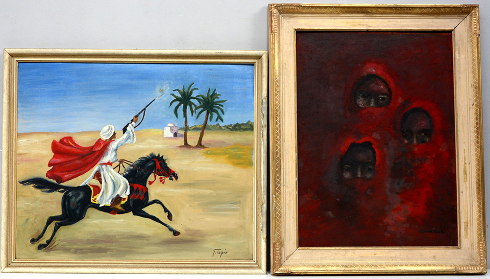 Lotto di due dipinti con figure arabe di misure e autori differenti, in...