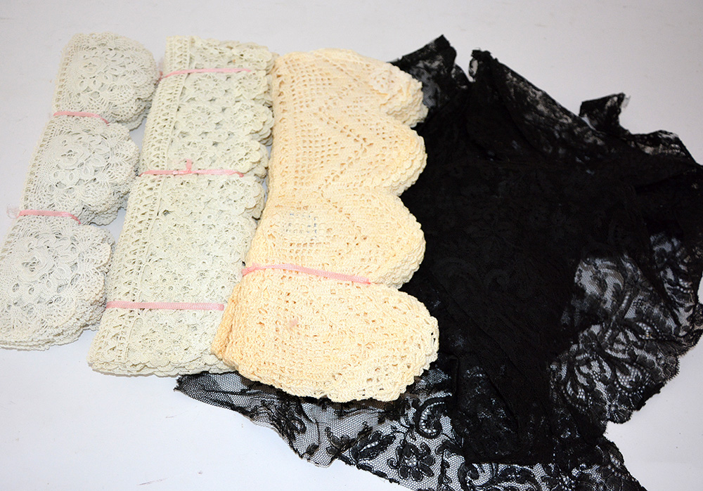 Lotto 1265 | Scatola contenente ritagli di pizzo nero e metraggi di varie bordure (difetti)