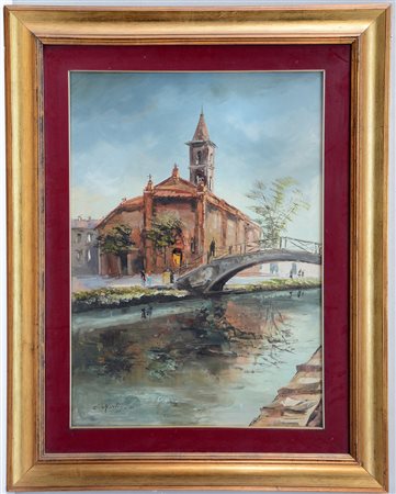 Eugenio Mantegani (Milano 1929 - 2005) "Milano, San Cristoforo" olio su tela...