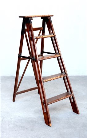 Scala pieghevole in legno dolce con finiture in ferro. Fine sec. XIX (h. cm 116)