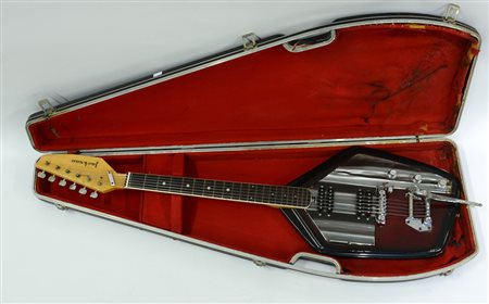 Chitarra elettrica della ditta Jackson, 1990 c. Modello Vox, 4 pickups, due manopole del volume, manopola del tremolo, discrete condizioni, scritta ´Jacksonª sulla paletta (lunghezza della corda mm 630). Con custodia