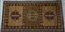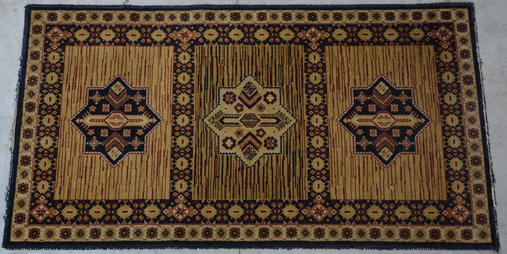 Tappeto meccanico secolo XX, disegno con tre medaglioni su fondo beige (cm 178x98) (difetti)