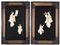 Due pannelli in lacca nera con decorazioni in avorio di dame con giovani...