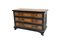 Cassettone in noce e legno ebanizzato a tre cassetti sul fronte, intarsiati e filettati a motivi floreali, fianchi riquadrati, maniglie in bronzo decorate a foglie. Piedini sagomati. Sec. XVIII (difetti)(cm 150x95x67)