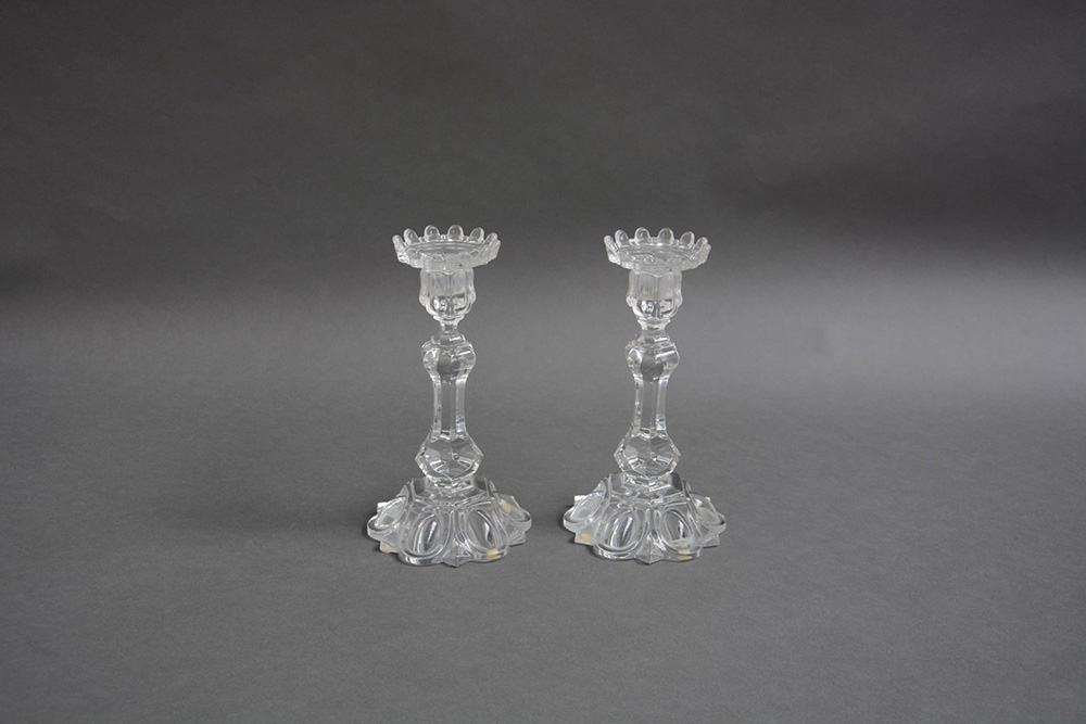 Manifattura di Baccarat, Francia. Coppia di candelieri ad una fiamma in...