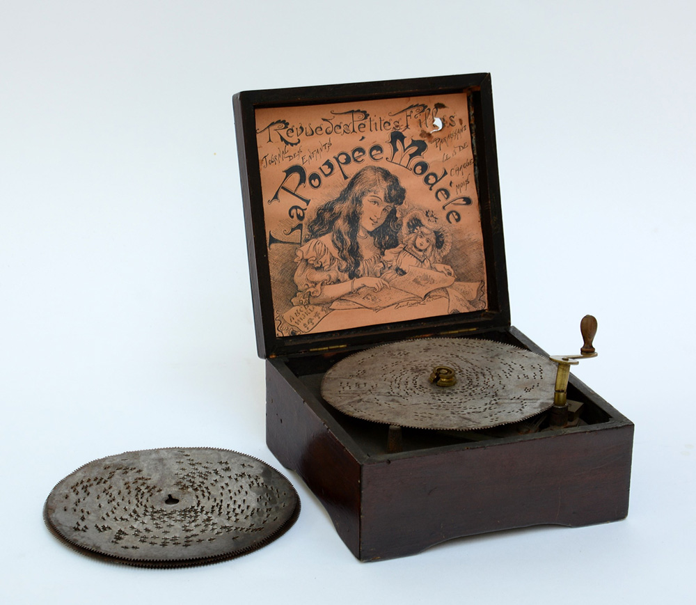 Carillon, inizio XX secolo Scatola di legno verniciato, non funzionante, allíinterno del coperchio etichetta ´La PoupÈe Modeleª. Con 4 dischi dentati