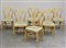 Gruppo di sei sedie chiavarine in legno tornito e dorato, gambe unite da...