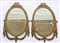 Coppia di specchiere di forma ovale con cimasa intagliata e dorata a fiocco,...