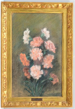Firma indecifrata "Garofani" pastello su carta (cm 50x31) Firmato in basso a...