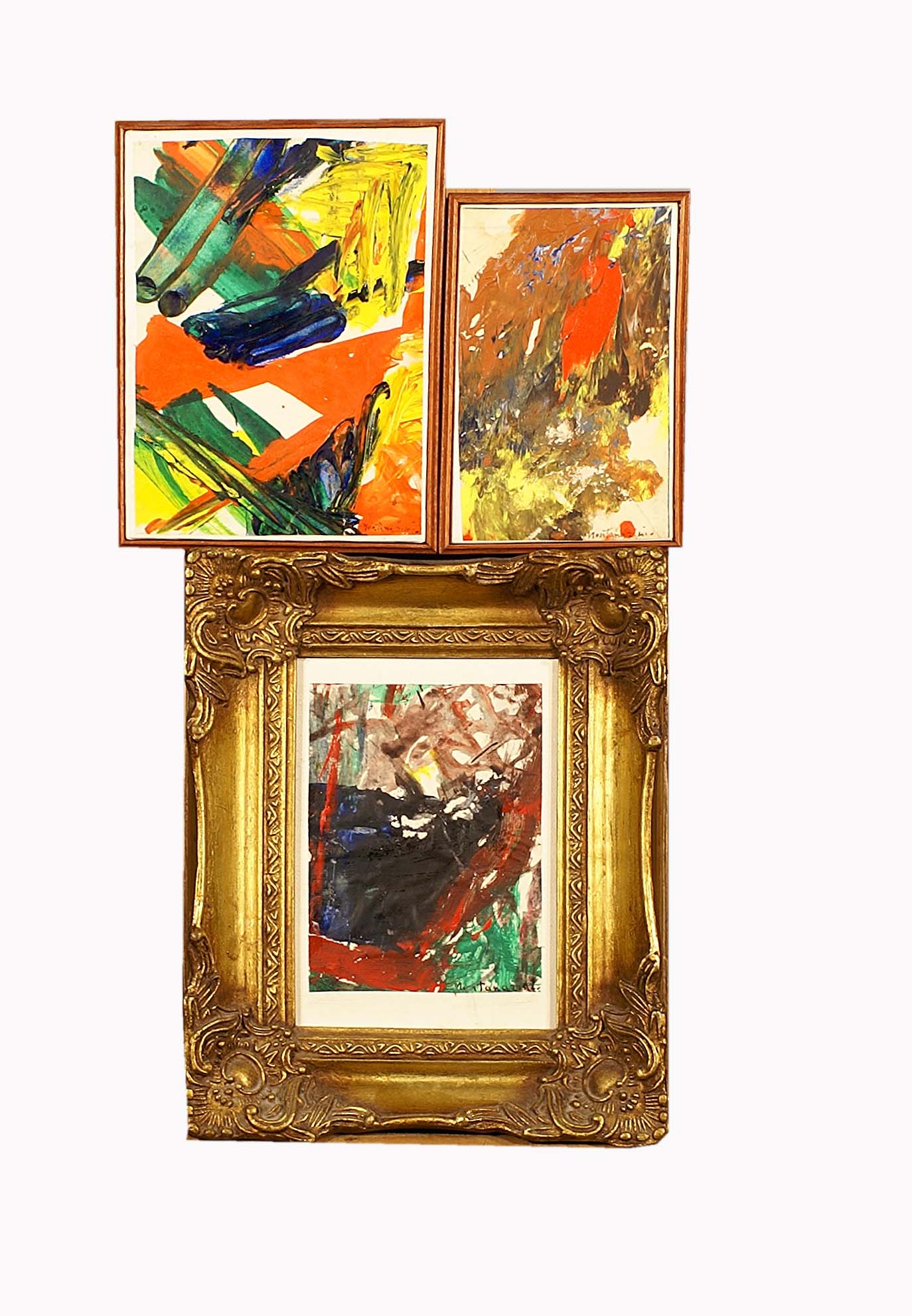 Luigi Montanarini (Firenze 1906 - Roma 1998), "Senza titolo", lotto composto da tre tecniche miste, misure diverse, firmate in basso a destra.