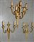 Lotto composto da due applique a due luci e una cinque luci in bronzo dorato (h cm 40 e 50 circa) (difetti)