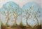 Ignoto, "Alberi con uccelli e frutta" coppia di dipinti ad olio su tela...