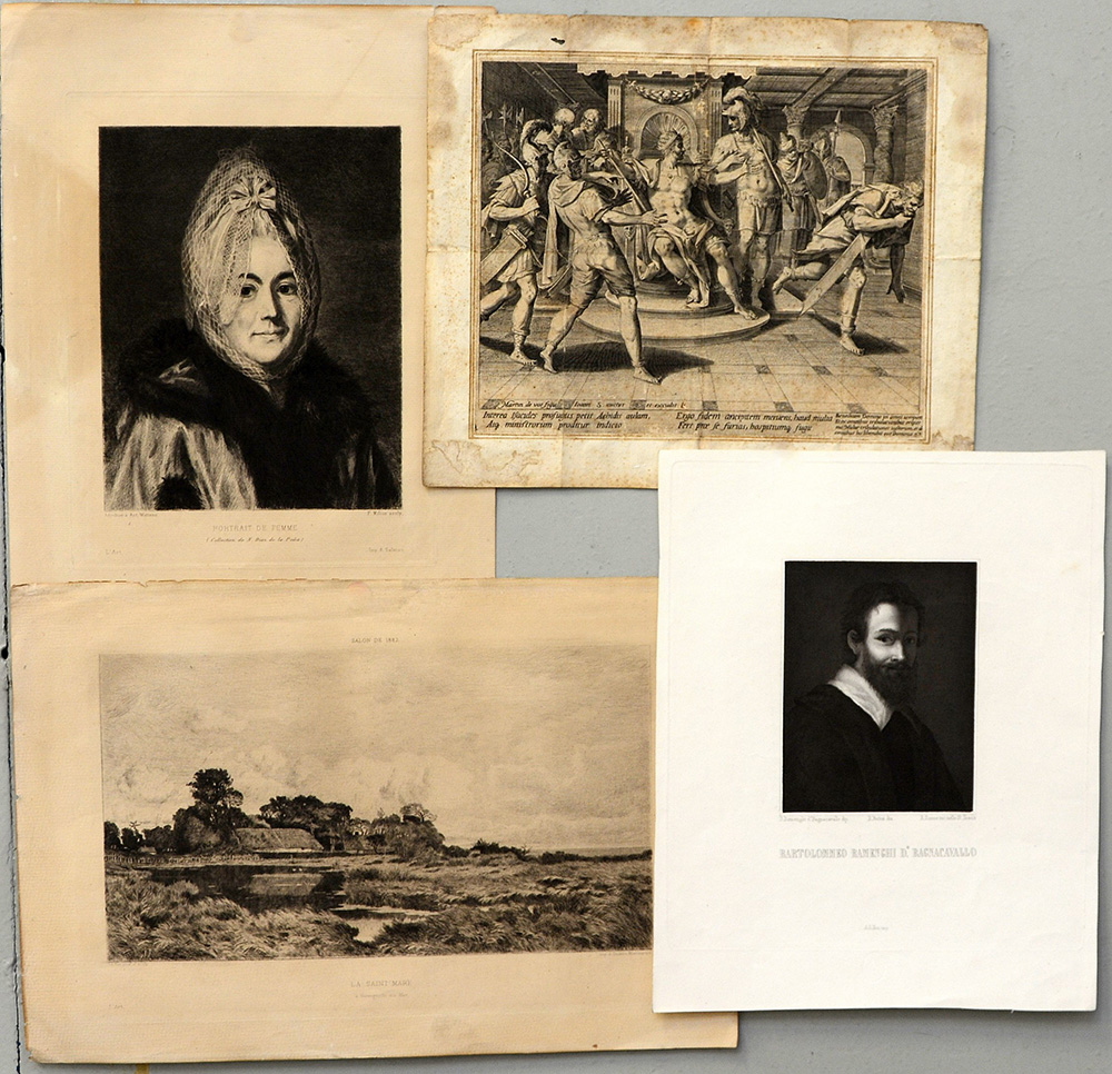 Lotto di numerose incisioni di soggetto, epoca e dimensioni differenti (difetti)