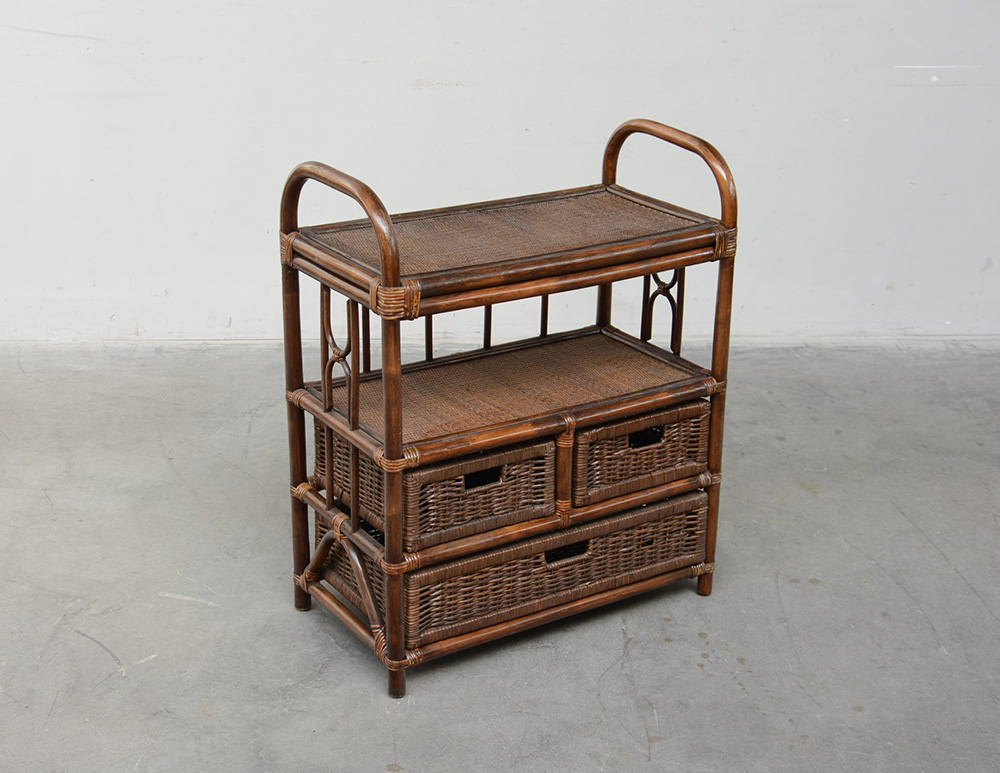 Lotto 1609 | Mobiletto in bamb˘ e vimini a tre cassetti sul fronte e montanti torniti (cm...