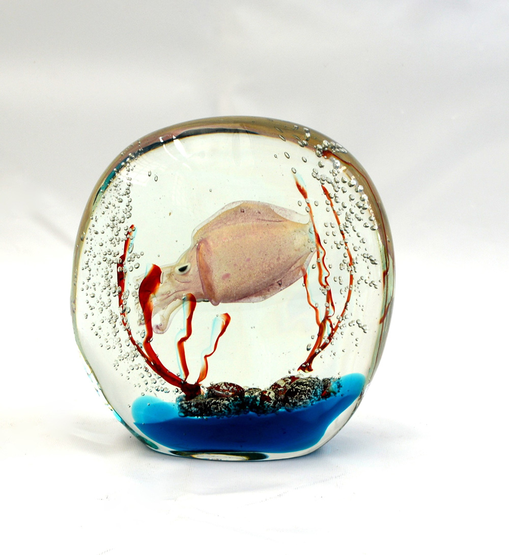 Manifattura di Murano, "Acquario", scultura in vetro policromo. Firmata F. Morasso sotto la base (h cm 27)