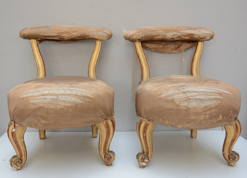 Lotto composto da due sedie da camera in legno intagliato e dorato (difetti)