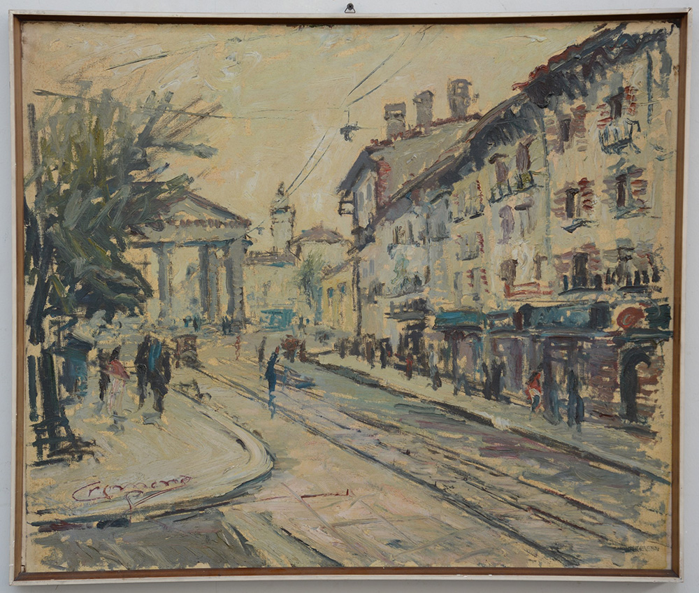 Lotto 1645 | Cremona "Scorcio di città", olio su tela (cm 67x79) firmato in basso a...