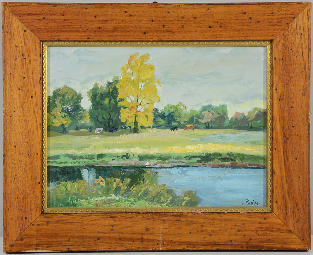 Ignoto, "Paesaggio campano con armenti" olio su cartonicino (cm 23x31) firmato in basso a destra, iscritto e datato al retro. In cornice