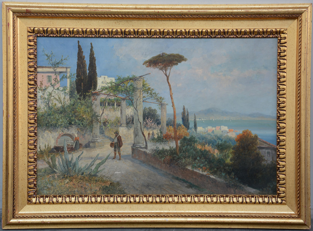 Ignoto, "Scorcio di Amalfi", olio su tela (cm 52x80) tracce di firma in basso...