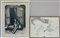 Lotto composto da un disegno a pastello nero raffigurante una ragazza, e un disegno a matita raffigurante scarpe e cintura, di autori differenti (cm 35x50), in cornici (lievi difetti)
