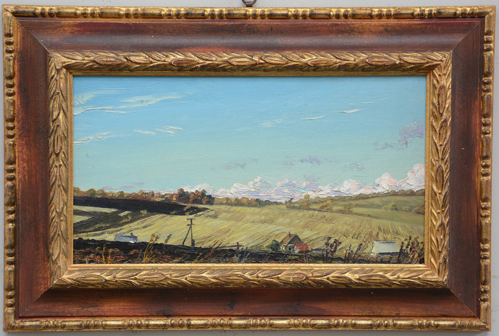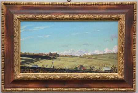 Firma indecifrata, "Paesaggio di campagna" olio su masonite (cm 20x36)...