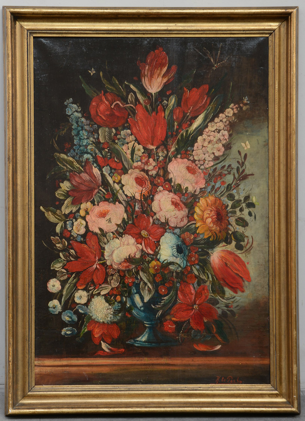 Ignoto "Trionfo floreale", olio su tela (cm 100x69). In cornice