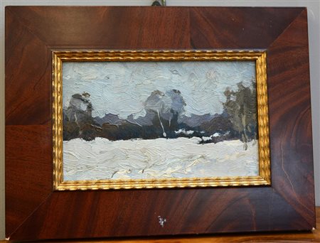 Ignoto, "Paesaggio invernale" olio su tela (cm 13x21) iscritto al retro. In...