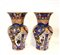Coppia di vasi in porcellana decorata nei toni del blu e dorature a figure,...