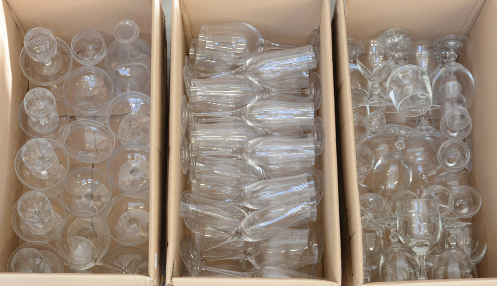 Lotto composto da tre cartoni contenenti numerosi bicchieri di diversa foggia...