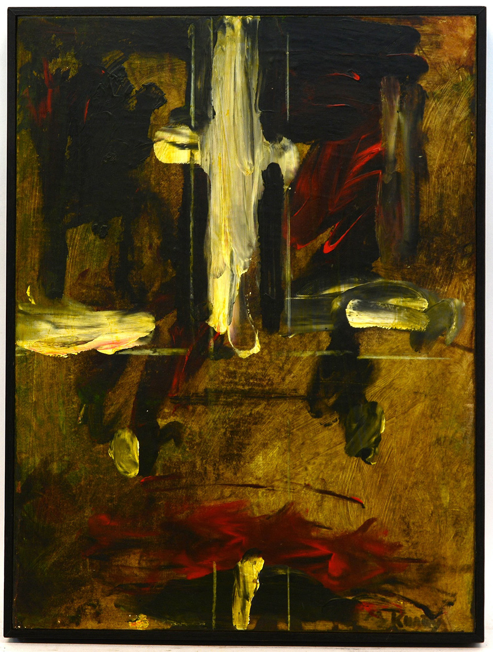 Kuatty Max (Canneto Sull'Oglio 1930 - Milano 2011) "Composizione", tecnica mista su tavola (cm 40x30), etichetta della Galleria d'Arte Borgogna di Milano al verso, in cornice