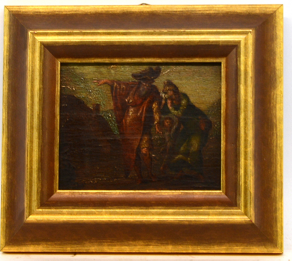 Ignoto, olio su tavoletta raffigurante scena di genere (cm 10x12), in cornice