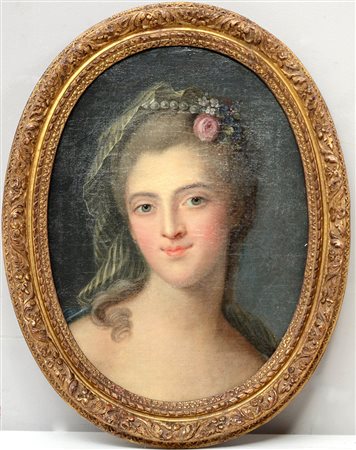 Scuola francese sec. XIX "Ritratto di donna" olio su tela ovale (cm 40x30) In...
