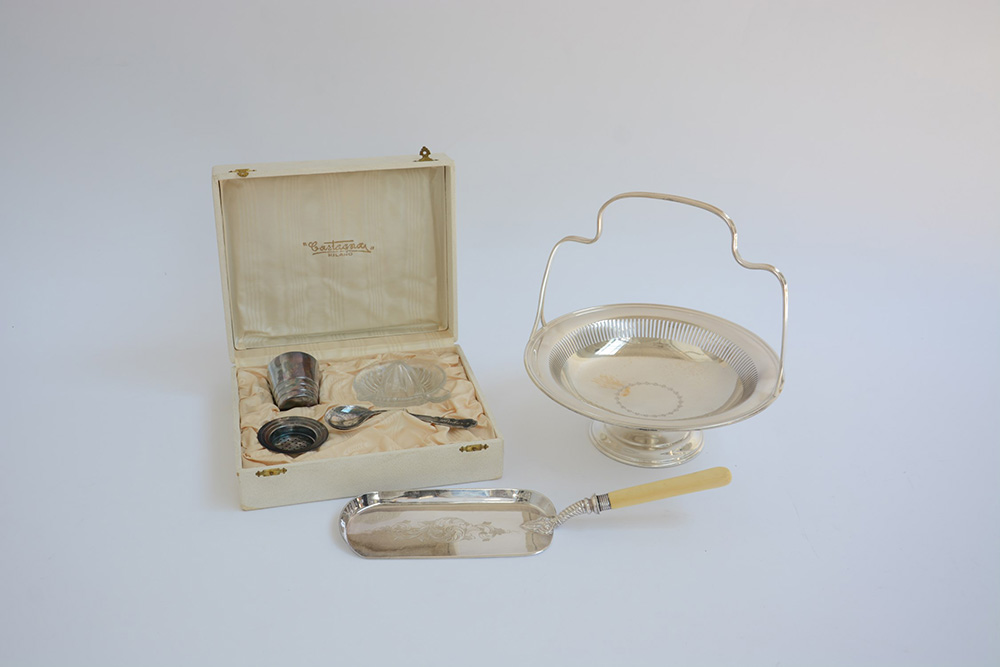 Lotto composto da una paletta raccogli briciole e un centrotavola Mappin&Webb...