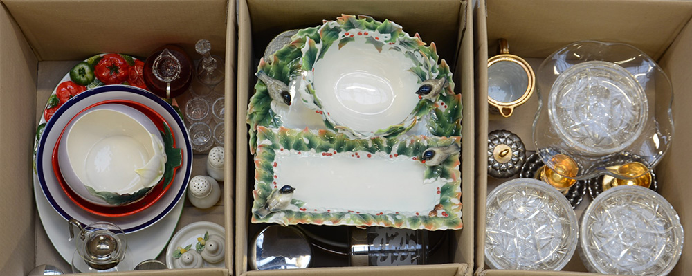 Tre cartoni contenenti oggetti in materiali diversi (difetti)
