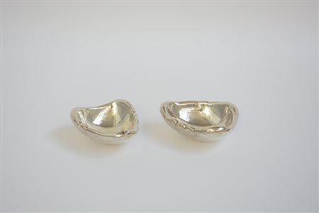 Coppia di posacenere di forma sagomata in argento. Marchi del Fascio....