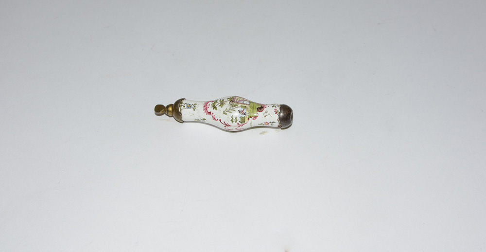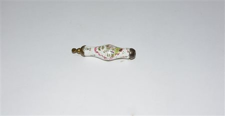 Manifattura del sec. XIX. Portaprofumo in maiolica con ghiera in metallo (h. cm 9) (difetti)