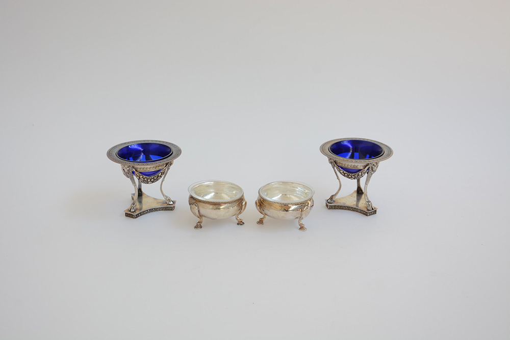 Lotto 1994 | Lotto in argento e vetro composto da due coppie di saliere. Italia e...